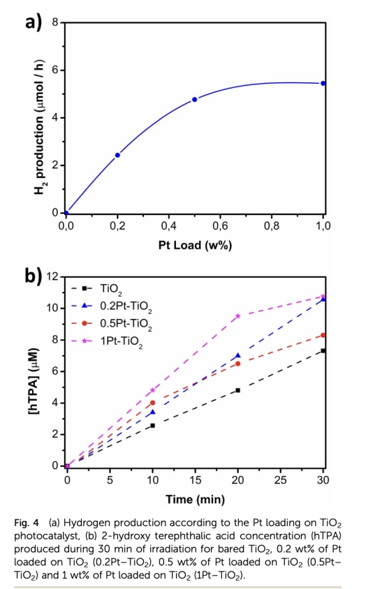 數據:0.5% Pt/TiO?的·OH生成量最高,1% Pt/TiO?因鉑團聚導致·OH產量下降。