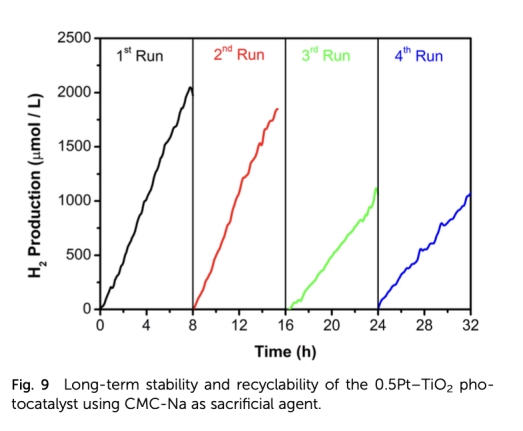 數據:0.5% Pt/TiO?循環(huán)使用4次后產氫下降46%。
