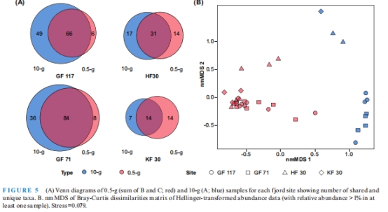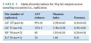 數(shù)據(jù):10g樣本的ASV豐富度(GF71站:117±5)顯著高于0.5g樣本(28±19)。