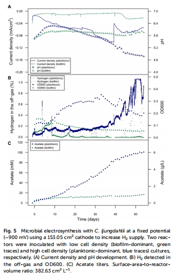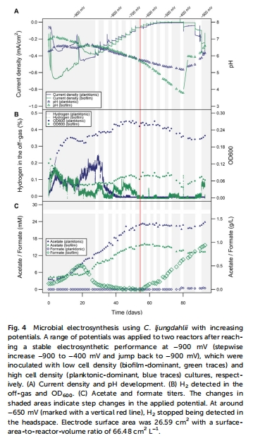 使用楊氏梭菌的微生物電合成受益于氫電子介導,并允許產生更多種類的產品