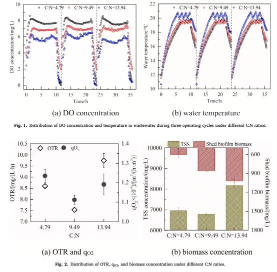 系統闡明不同碳氮比(C:N)條件下氧傳質(OMT)在宏觀(反應器)與微觀(生物膜)尺度的機制,建立生物膜好氧層厚度與氧濃度的定量模型,為優化曝氣能效提供理論依據。
