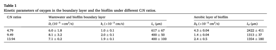 碳氮比對廢水和生物膜中氧傳質特性的影響