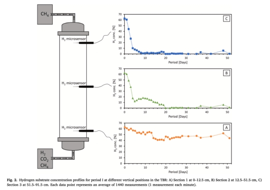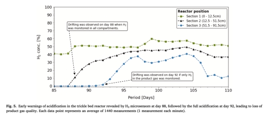 數(shù)據(jù):第88天微電極檢測到底部/中部H?消耗下降(濃度上升),第92天產(chǎn)物氣H?升至1.6%(突破閾值)。