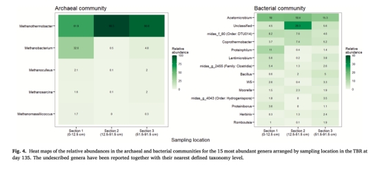 數(shù)據(jù):底部富集氫營養(yǎng)型甲烷菌(Methanothermobacter),頂部存在產(chǎn)乙酸菌(Acetomicrobium)和潛在同型產(chǎn)乙酸菌(Moorella)。