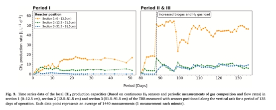 區(qū)域產(chǎn)能量化:基于H?消耗梯度計算局部甲烷產(chǎn)率(圖3),揭示底部產(chǎn)能是頂部6.6倍,證明TBR設(shè)計可優(yōu)化。