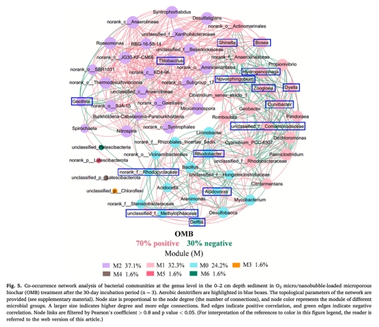 微生物網絡分析顯示OMB增強菌群協作,功能基因表達證實硝化-反硝化耦合途徑,為富營養化水體原位修復提供新技術。