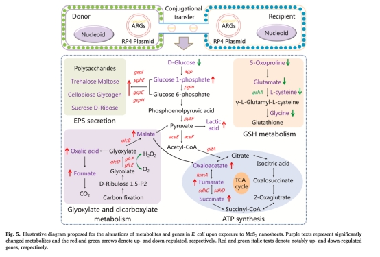環境風險:MoS?納米片通過氧化應激、細胞粘附增強和能量代謝亢進,顯著促進土壤中ARGs的水平傳播。