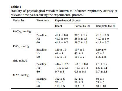 生理參數:動脈血壓、血氣分析(表1)。