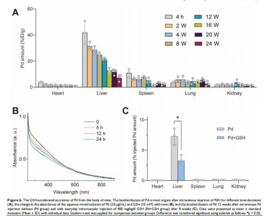 數(shù)據(jù):GSH注射加速Pd排泄,12周后肝殘留率降至3%(對照組24.4%)。