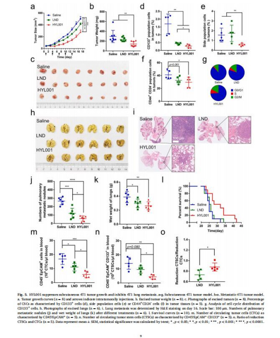 意義:HYL001高效靶向CSCs,克服LND臨床療效不足的缺陷。
