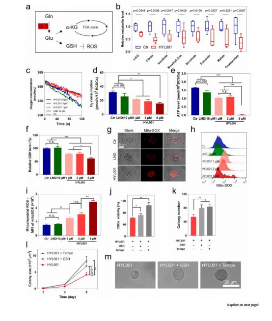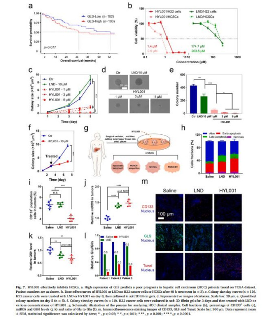 數(shù)據(jù):HYL001處理肝癌患者新鮮組織后,CD133? CSCs減少,GLS表達(dá)下降(圖7h-i, m)。