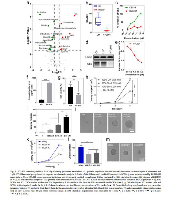 意義:HYL001通過抑制GLS阻斷Gln代謝,破壞CSCs能量供應(yīng)。