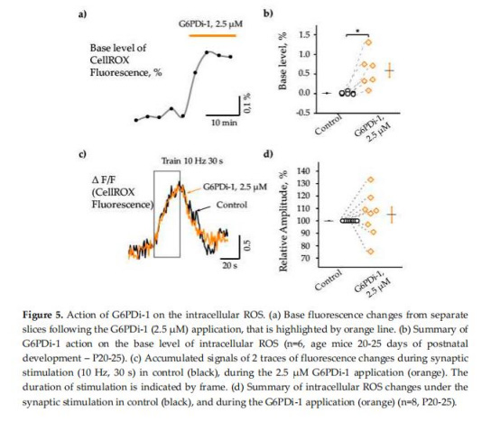 G6PDi-1升高基礎ROS水平0.6±0.17%(圖5b),但突觸刺激誘導的ROS增幅不變(104.8±6.2% vs 對照)(圖5d)。