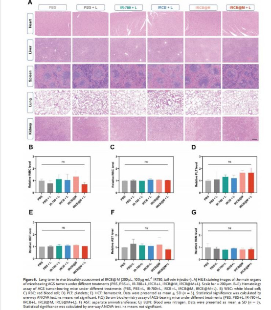 通過血液生化及器官H&E染色驗(yàn)證生物安全性(圖6)。