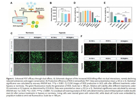 本研究開發(fā)了一種新型納米顆粒 IRCB@M,通過雙重機(jī)制增強(qiáng)光動(dòng)力療法(PDT)效果: