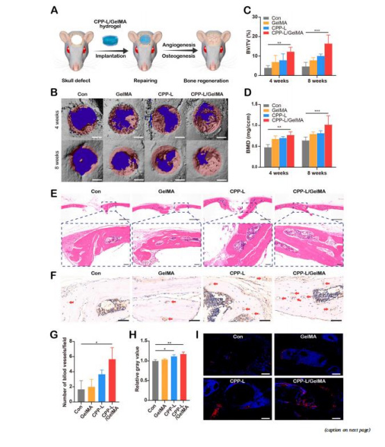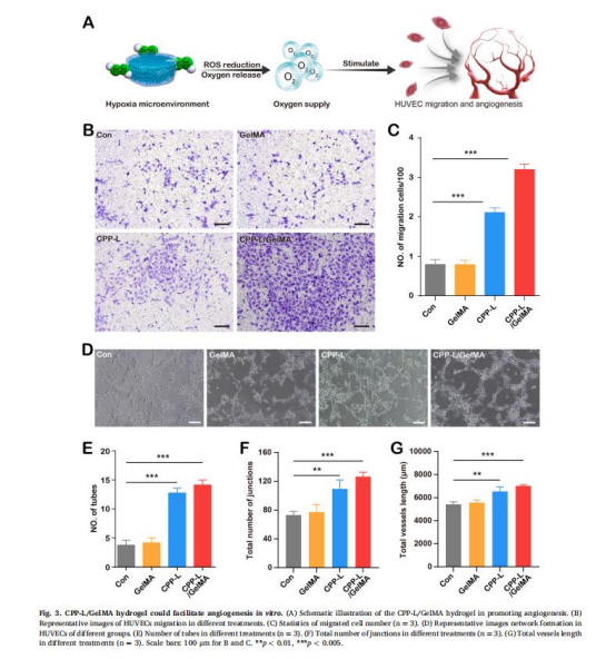 數據:CPP-L/GelMA組血管密度為對照組的1.5倍(CD31?染色)。
