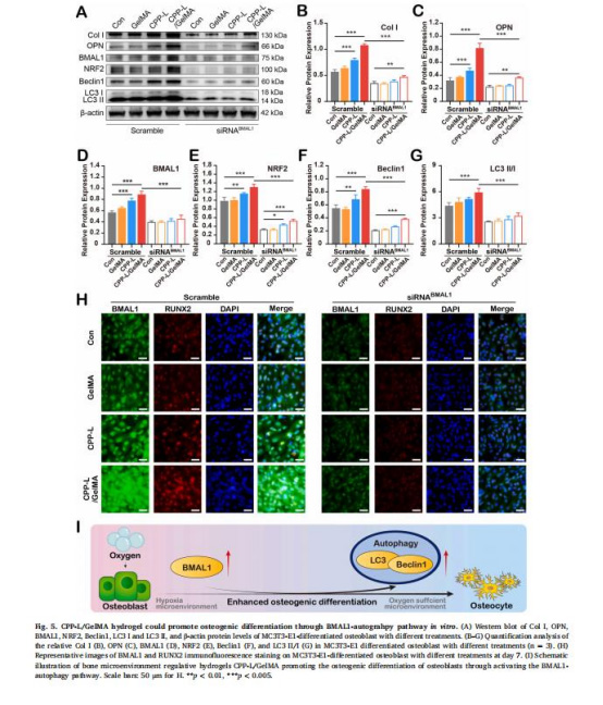 骨再生機制:通過激活BMAL1-自噬通路(Nrf2-BMAL1-autophagy pathway)顯著促進骨再生。
