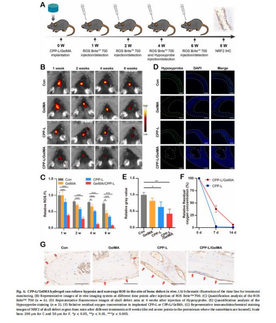材料創新性:CPP-L/GelMA是首個集成ROS清除與智能供氧的骨修復水凝膠,可動態響應微環境變化。