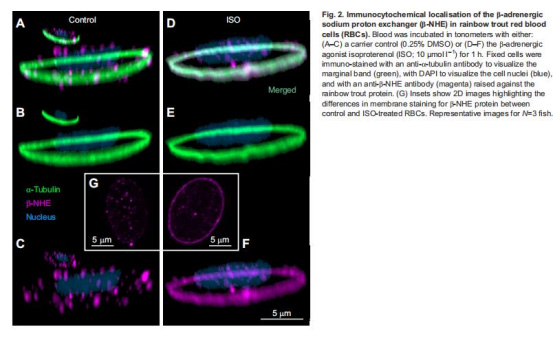 數(shù)據(jù):腎上腺素刺激后β-NHE蛋白從胞質(zhì)轉(zhuǎn)位至紅細(xì)胞膜邊緣帶。