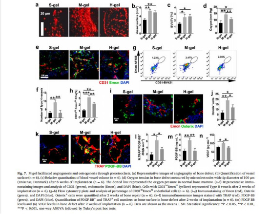 數(shù)據(jù):中等剛度組(29.4 kPa)CD31hiEmcnhi型H血管數(shù)量較軟/高剛度組增加2倍(圖7g),PDGF-BB分泌量提高80%(圖7m)。