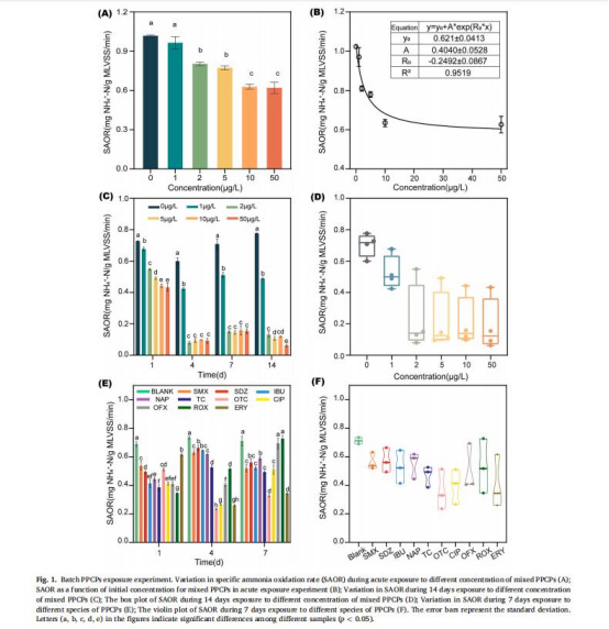 通過批次測試分析不同濃度混合PPCPs(1–50 μg/L)對PN的急性抑制效應。連續14天暴露實驗監測SAOR變化,并對比單一PPCPs的影響。同步測定N?O排放率。