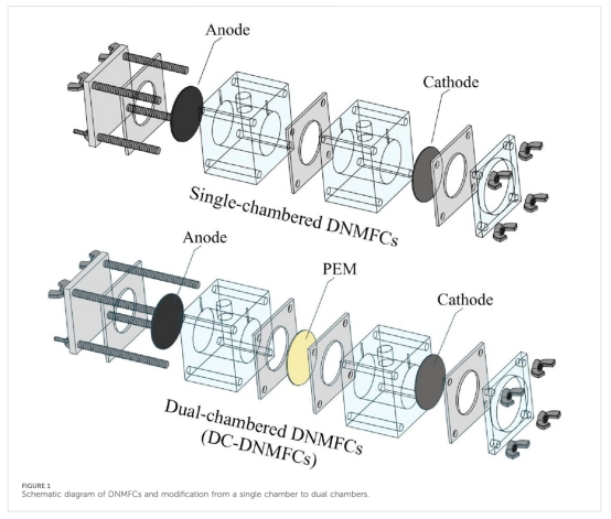 反應器設計:構建可拆卸單室DNMFC(工作體積30 mL),碳布陽極/Pt-C陰極(圖1)。