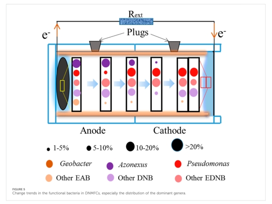 意義:揭示空間分布規律——雙功能菌全域分布,厭氧菌受限陽極區,兼性菌擴散至陰極。來源圖4、圖5。