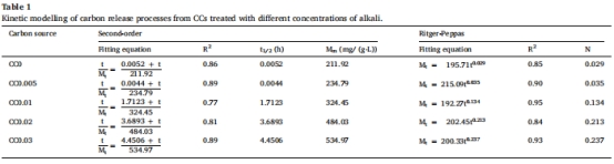 表1:CC碳釋放動力學參數
