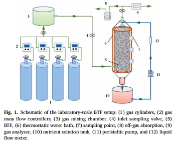 構建實驗室規模BTF(圖1),以CC0.03為碳源,分三階段提升入口NOx濃度(300→700→1000 mg/m3)。