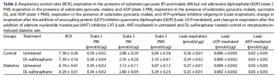 表2:線粒體呼吸功能(RCR、狀態(tài)3呼吸、漏呼吸等)