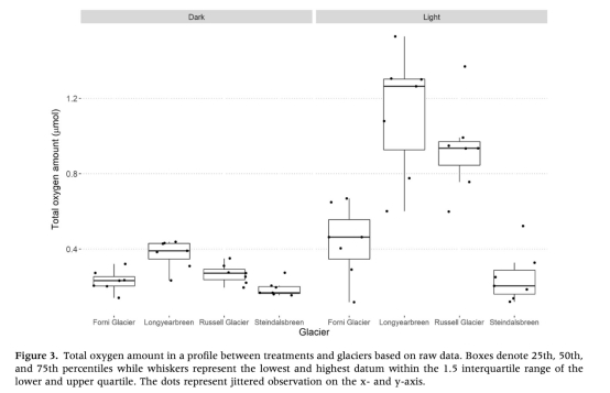 摘要探討了冰川表面沉積物(cryoconite)中氧合作用對有機質分解的影響。通過采集北極和歐洲大陸五個冰川的樣品,實驗模擬了靜置(stagnant)和機械混合(mechanically mixed)條件(模仿融水攪動),測量了氧垂直分布和有機質含量變化。結果發(fā)現(xiàn):