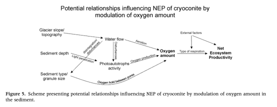 系統(tǒng)復雜性:冰塵孔作為"簡單模型系統(tǒng)",實際包含多因素互作(圖5),未來需結合水文與微生物功能深化碳循環(huán)認知。