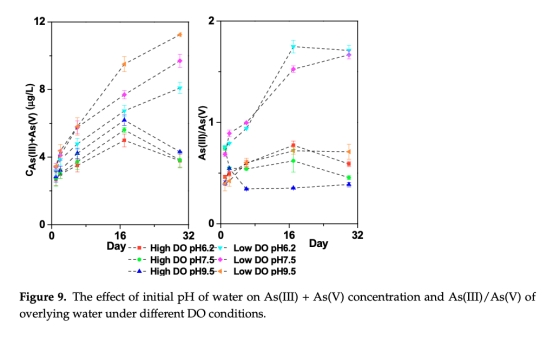 意義:低DO+pH 9.5組砷釋放速率最高(0.083 mg/(m2·d)),量化多因子協同效應。