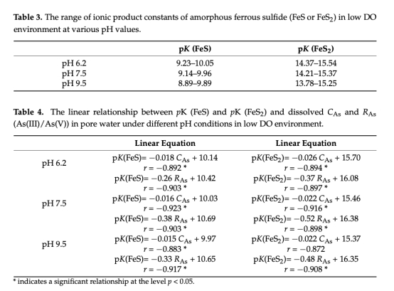 結合離子積常數計算(表3-4)和相關性分析(表2),闡明無定形硫化亞鐵形成與砷釋放的關系。