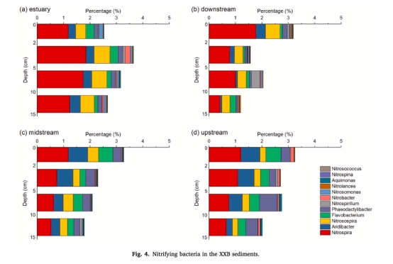 數據內容:硝化菌(如Nitrospira)、反硝化菌(如Exiguobacterium)、anammox菌(如Pirellula)、N-DAMO菌(如Methylomicrobium)的相對豐度。