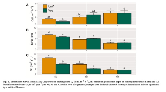 意義:營養鹽富集使穴居深度(MPD)減少50%(7.0→3.5cm),孔隙水交換率(Q)增加2倍(圖3A),表明生物活動改變營養鹽運移路徑。