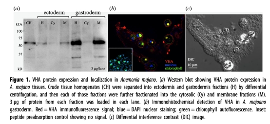 數(shù)據(jù)來源:Western blot顯示VHA在胃皮層(含共生藻)富集,膜組分中表達(dá)最高(圖1a)。