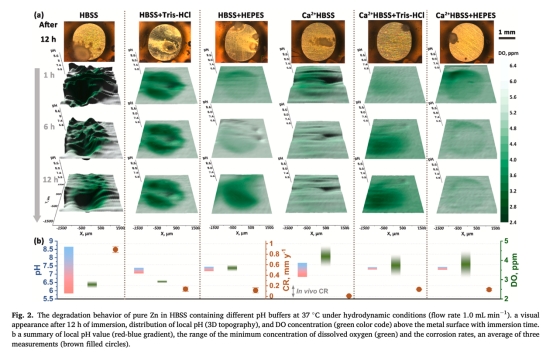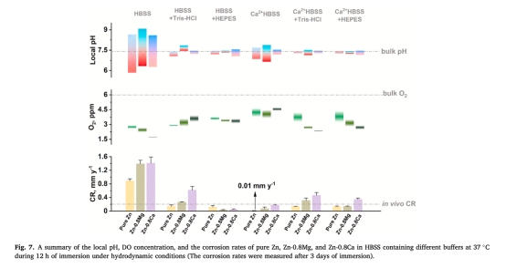 Tris-HCl或HEPES緩沖的Hanks平衡鹽溶液中鋅合金界面的局部pH與氧濃度研究
