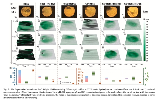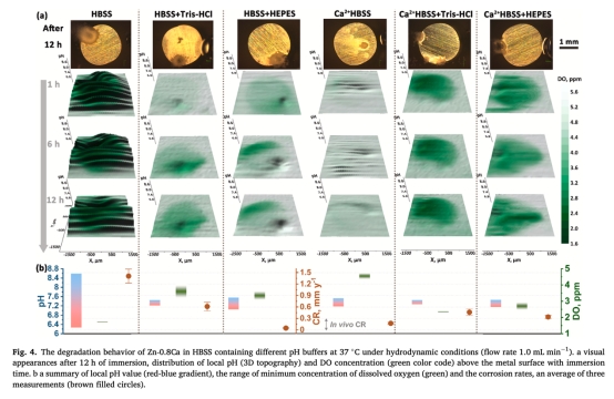 ? 意義:證實合成緩沖液可有效穩(wěn)定鋅合金界面pH,突破鎂體系中"緩沖失效"認(rèn)知,為體外降解實驗提供可靠pH控制方案。