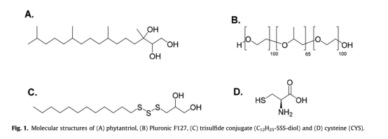 1. 分子設計:合成兩親性三硫化物C12H25-SSS-diol(圖1C),其疏水尾鏈與PHY相容,親水頭基含反應性三硫鍵