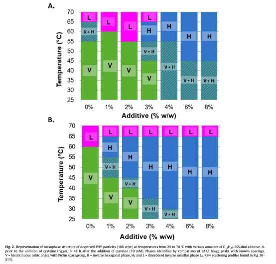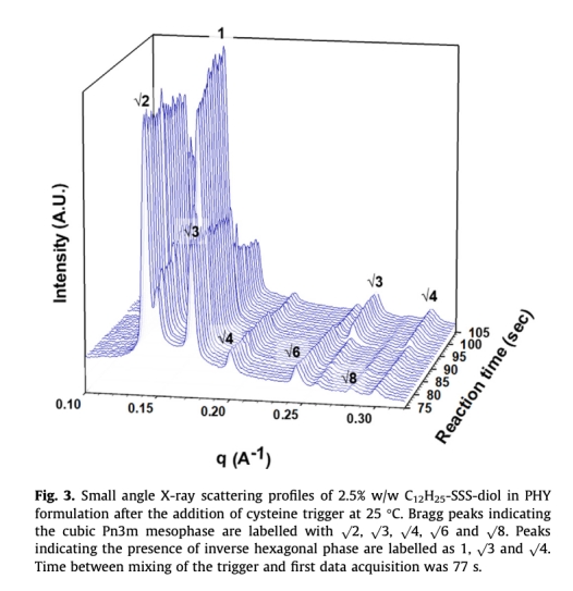 3. 三硫鍵降解產(chǎn)物(疏水性二硫化物)增強界面曲率,驅(qū)動立方相→六方相轉(zhuǎn)變