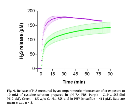 2. 脂質(zhì)載體延緩H2S釋放(相比游離分子),規(guī)避H2S治療窗窄的風險