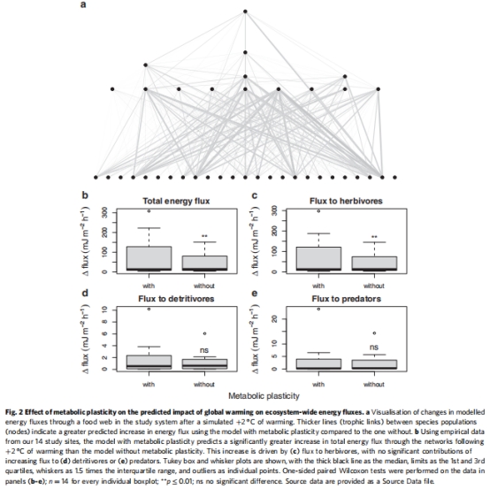 Fig.2c:驅動主要來自草食動物鏈路能量通量增加(p=0.003),而碎食動物和捕食者鏈路無顯著變化(Fig.2d-e)。