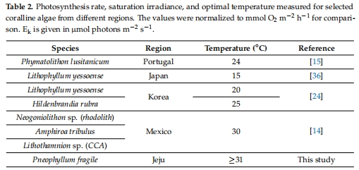 輻照度和溫度對韓國沿海水域甲殼珊瑚藻 Pneophyllum fragile (Corallinales, Rhodophyta) 光合作用的影響
