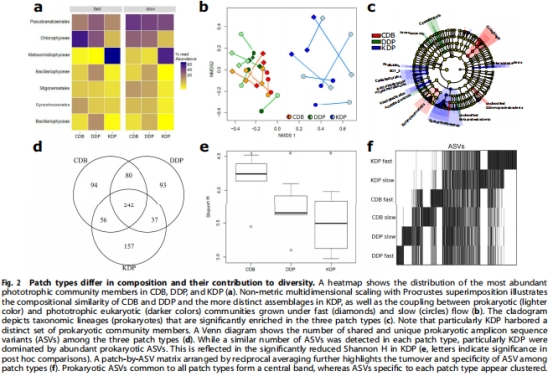 光養(yǎng)生物膜自發(fā)形成三種空間斑塊:藍(lán)藻基底(CDB)、硅藻斑塊(DDP)、綠藻簇(KDP)