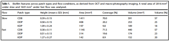 KDP高度最高(1.09±0.24 mm),CDB覆蓋率最大(70%)