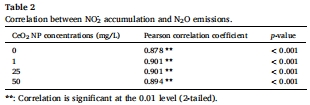 量化劑量效應:精準量化不同CeO? NP濃度下N?O排放增量(表1),確立濃度依賴關系(25–50 mg/L時排放顯著增加)。