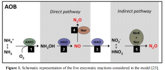 機制解析:通過數學模型揭示AOB(氨氧化菌)的兩條N?O生成路徑(NN與ND)的貢獻比例。