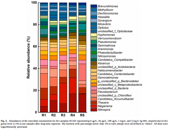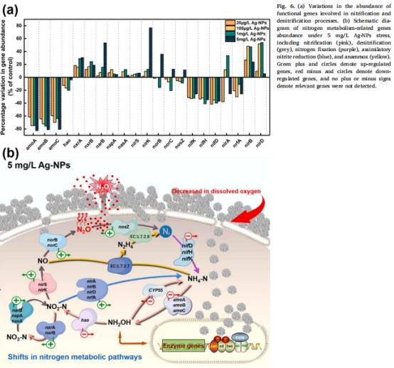 研究意義:證實高劑量Ag-NPs抑制硝化菌(如Nitrosomonas↓80%),導(dǎo)致氨積累(圖5),為后續(xù)N?O途徑轉(zhuǎn)變提供基礎(chǔ)。
