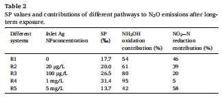 數(shù)據(jù)來源:5 mg/L Ag-NPs使N?O排放峰值升高67.54%(vs.對照組),且與NO??-N積累正相關(guān)。